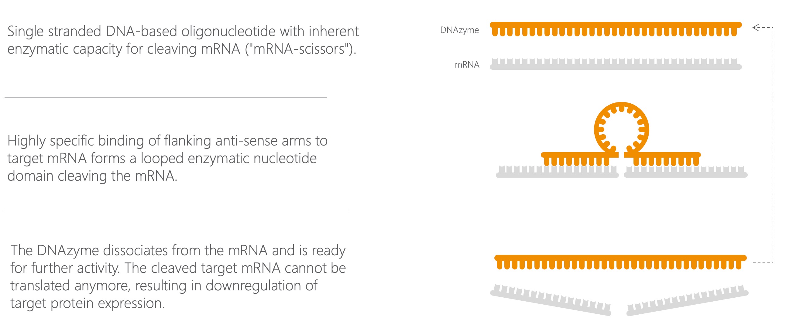 In contrast, antisense oligonucleotides offer a promising solution to the limitations faced by small molecules and antibodies. Sterna's proprietary active pharmaceutical ingredient, hgd40, is a novel catalytic antisense oligonucleotide—specifically, a DNAzyme—that targets the mRNA of GATA-3, potentially overcoming these challenges.